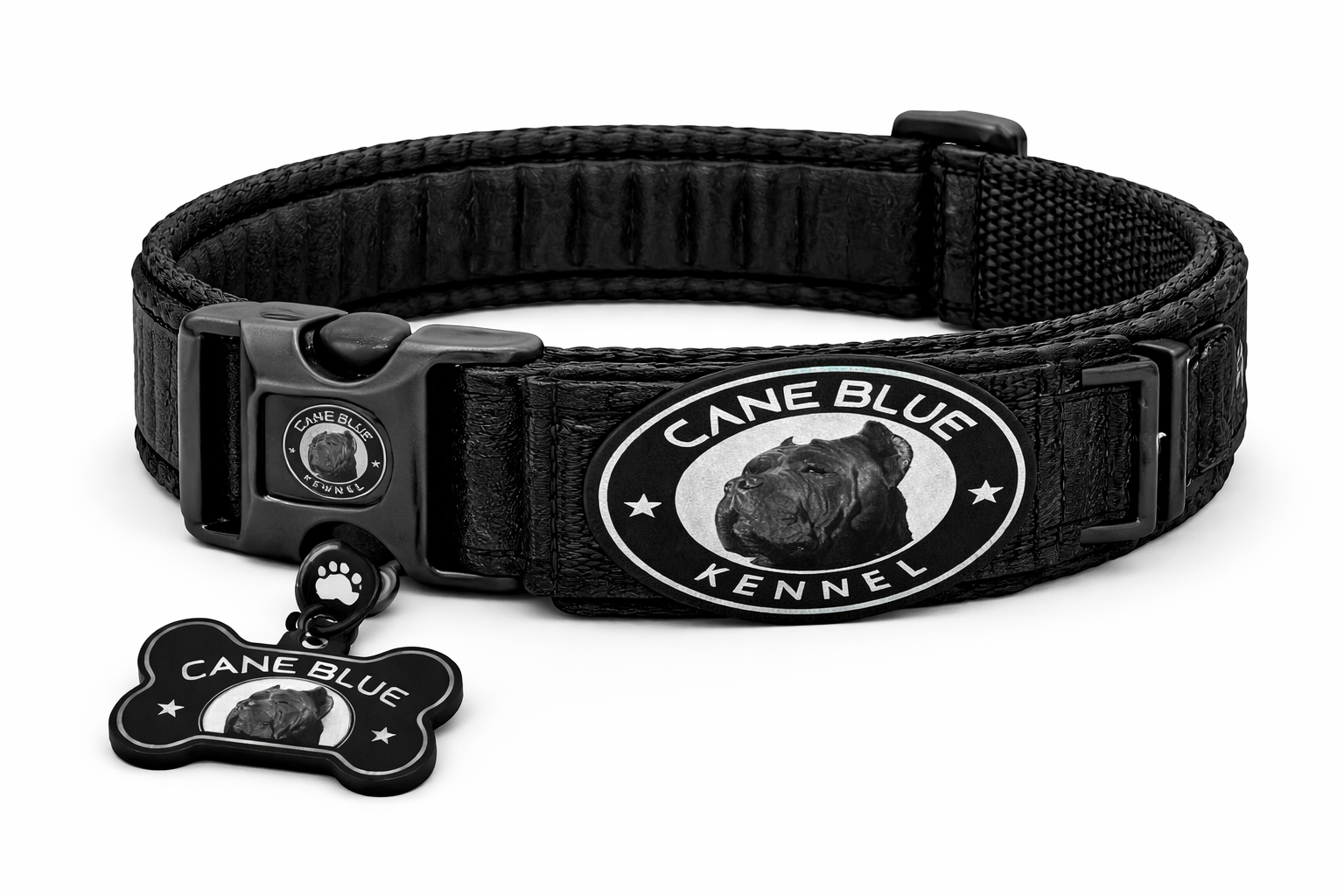 Get your Cane Corso looking sharp and powerful with the Cane Blue Kennel dog collar. This durable, stylish collar features the Cane Blue Kennel logo emblazoned on a...